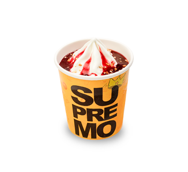 delicioso sorvete de baunilha acompanhado de polpa de frutas vermelhas selecionadas