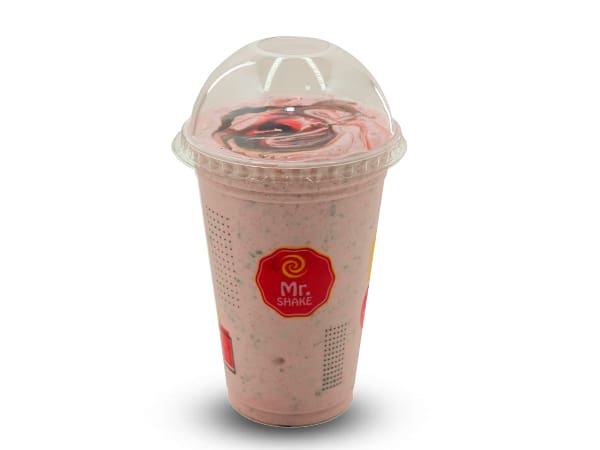 Delicioso sorvete de baunilha extremamente cremoso batido com polpa de morango e chocolate flocos.