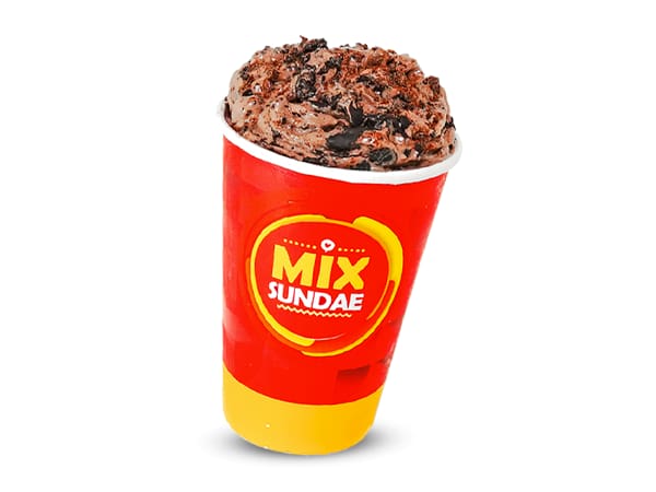 Sorvete de chocolate cremoso com flocos de chocolate. Exclusividade mr. Shake!