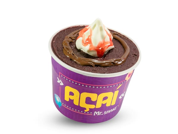 Delicioso sorvete de baunilha extremamente cremoso batido com polpa de açaí e Leite Ninho.