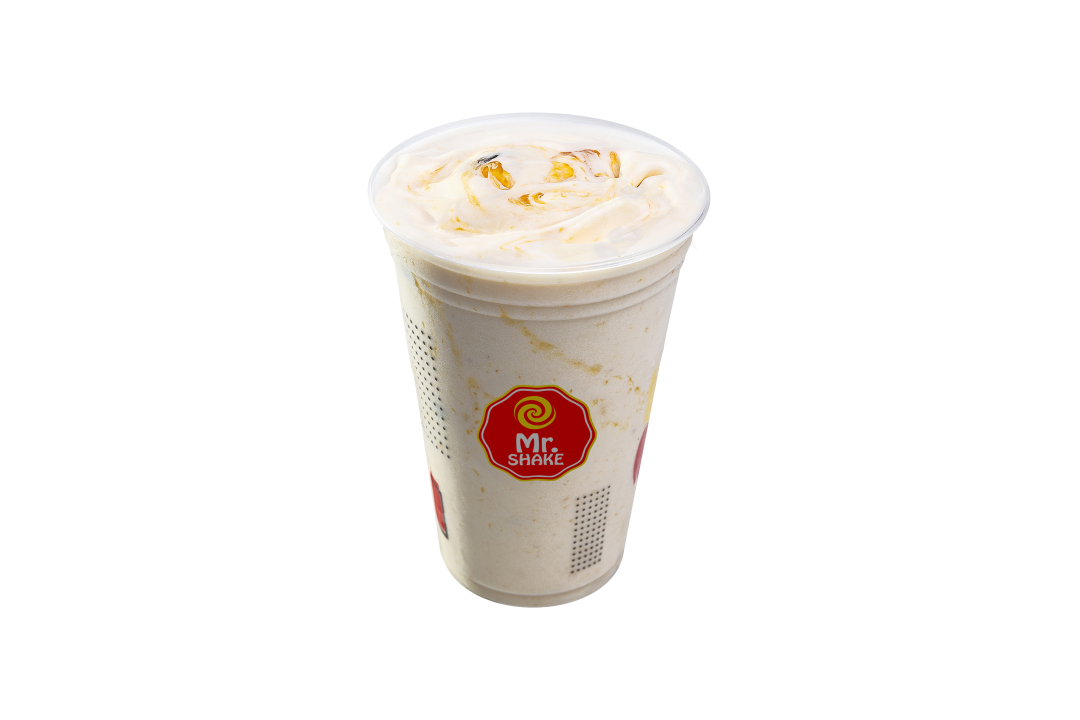 Delicioso sorvete de baunilha extremamente cremoso batido com polpa de maracujá.